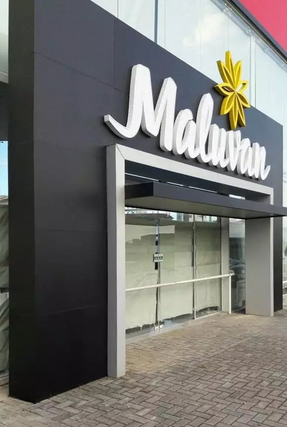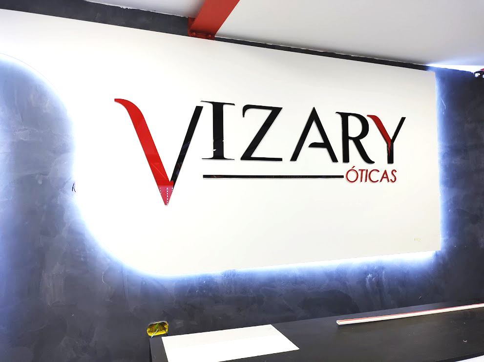 Letreiro em acrilico com fundo em MDF com led para recepção de loja.